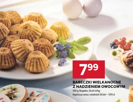 Babeczki wielkanocne występują w ofercie Stokrotka w cenie 7,99 zł za 300 g, co daje 26,64 zł/kg. Te słodkie wypieki z owocowym nadzieniem to idealna propozycja na świąteczny stół lub jako słodki dodatek do wielkanocnego śniadania. Najniższa cena z ostatnich 30 dni wynosiła 9,99 zł, więc teraz masz okazję zaoszczędzić kupując te pyszne babeczki. Warto skorzystać z tej oferty i przygotować smaczne przekąski na święta.