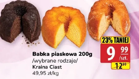 Babka piaskowa Kraina Ciasł w Api Market dostępna jest teraz w cenie 9,99 zł za sztukę, zamiast 12,99 zł. Produkt ma gramaturę 200g i kosztuje 49,95 zł za kilogram. Sprawdzi się jako słodki dodatek do kawy lub herbaty, a aktualna promocja w Ara to świetna okazja, by spróbować wybranej odmiany.