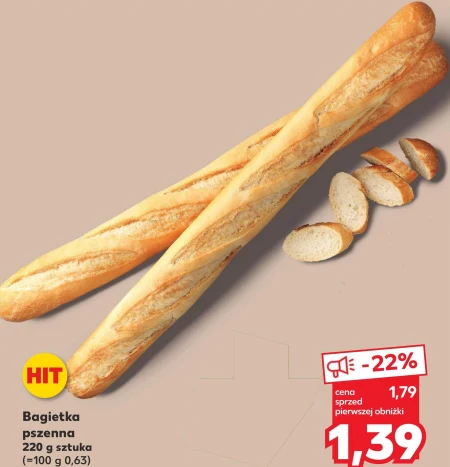 Bagietka pszenna 220 g sztuka (=100 g 0,63)
