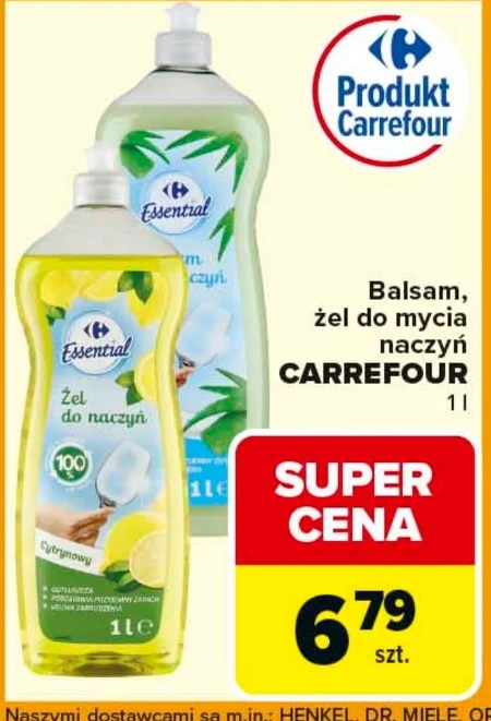 Balsam, żel do mycia naczyń CARREFOUR 1 l Balsam do naczyń Carrefour dostępny jest w cenie 3,99 zł za butelkę o pojemności 1 litr. Dzięki skoncentrowanej formule skutecznie usuwa tłuszcz, a regularna promocja w Carrefour pozwala zaoszczędzić na codziennych zakupach. Ten żel do mycia naczyń sprawdzi się idealnie w każdym domu, zapewniając czystość i blask naczyniom bez zbędnego wysiłku.