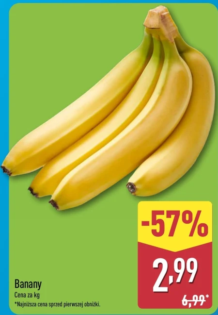Banany dostępne są w Aldi w cenie 2,99 zł za kilogram, co oznacza aż 57% zniżki w porównaniu do poprzedniej ceny 6,99 zł. To idealna okazja, żeby zaopatrzyć się w ten zdrowy i pożywny owoc. Banany świetnie sprawdzą się jako szybka przekąska, dodatek do śniadania – musli, owsianki czy jogurtu – a także w deserach i wypiekach. Bogate w potas i naturalne cukry, stanowią doskonałe źródło energii zarówno dla dorosłych, jak i dzieci. Można je z łatwością zabrać ze sobą do pracy, szkoły czy na trening. Pamiętaj, że taka obniżka to doskonała szansa na uzupełnienie zapasów i cieszenie się smakiem dojrzałych bananów przez dłuższy czas. Oferta ważna od 2026-04-02 do 2026-04-04 Źródło: gazetka AldiWłącz powiadomienia o ulubionych produktach:
