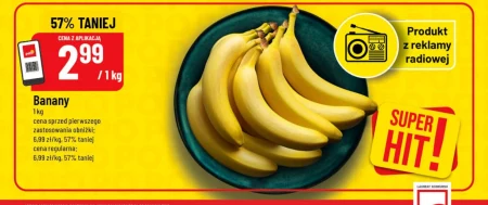 Banany cena sprzed pierwszego zastosowania obniżki: 6,99 zł/kg. 57% taniej cena regularna: 6,99 zł/kg, 57% taniej