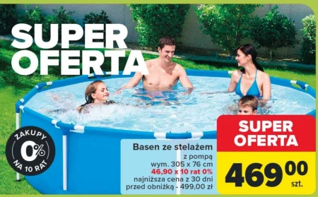 Basen ze stelażem z pompą wym. 305 x 76 cm 46,90 x 10 rat 0% najniższa cena z 30 dni przed obniżką - 499,00 zł