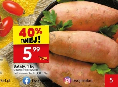 Bataty, 1 kg Cena sprzed pierwszego zastosowania obniżki · 9,99 zł / kg