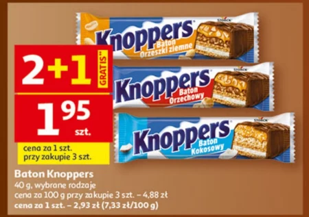 Baton Knoppers 40 g, wybrane rodzaje cena za 100 g przy zakupie 3 szt. - 4,88 zł cena za 1 szt. - 2,93 zł (7,33 zł/100 g)