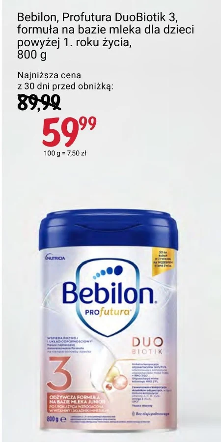 Bebilon Profutura Duobiotik 3 Formuła na bazie mleka po 1. roku życia 800 g - Oferta archiwalna