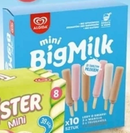 Big Milk Mini Lody o smaku wanilia truskawka czekolada 350 ml (10 x 35 ml) - Oferta archiwalna