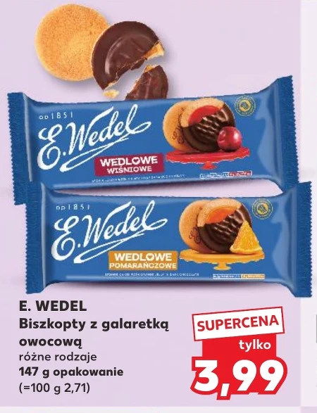 E. WEDEL Biszkopty z galaretką owocową różne rodzaje 147 g opakowanie (=100 g 2,71)