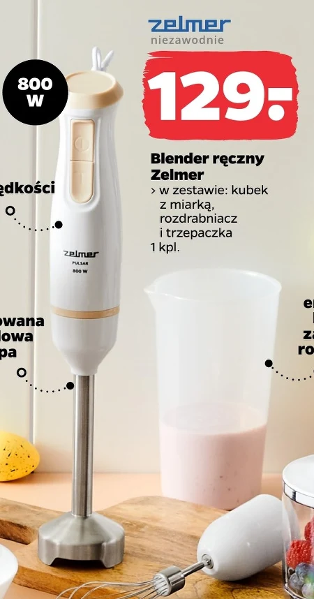 Blender ręczny Zelmer > w zestawie: kubek z miarką, rozdrabniacz i trzepaczka 1 kpl.