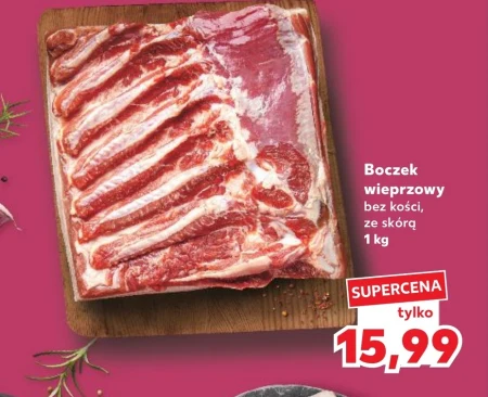 Boczek wieprzowy bez kości ze skórą 1 kg znajdziesz w promocji w Kauflandzie za jedyne 15,99 zł. To klasyczny produkt, który świetnie sprawdzi się do przygotowania tradycyjnych potraw, takich jak bigos, jajecznica czy pieczeń. Charakteryzuje się wyrazistym smakiem i odpowiednią ilością tłuszczu, co zapewnia soczystość podczas obróbki termicznej. Taka okazja nie zdarza się często, więc warto skorzystać z niskiej ceny i uzupełnić zapasy. Oferta ważna od 2026-04-23 do 2026-04-28 Źródło: gazetka Kaufland