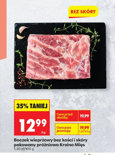 Boczek wieprzowy bez kości i skóry pakowany próżniowo Kraina Mięs