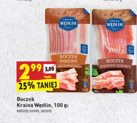 Boczek, waga 100 g. Wędzony surowy, parzony.