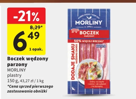Boczek wędzony parzony MORLINY plastry 150 g, 43,27 zł / 1 kg