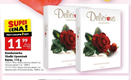Bombonierka Słodki Upominek Baron, 115 g 10,43 zł / 100 g - dotyczy ceny przy zakupie 2 szt. Cena przy zakupie 1 szt. - 13,99 zł 12,17 zł / 100 g - dotyczy ceny przy zakupie 1 szt. Najniższa cena z 30 dni przed obniżką - 13,99 zł / szt.