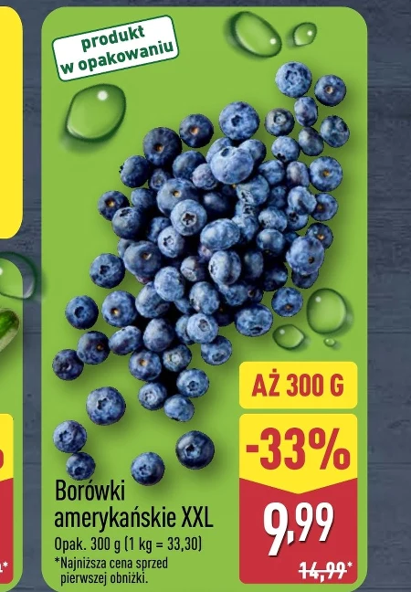 Borówki amerykańskie XXL Opak. 300 g (1 kg = 33,30) Świeże borówki amerykańskie XXL stanowią doskonały dodatek do smoothies, jogurtów oraz owsianki, wzbogacając je o antyoksydanty i witaminę C. Dzięki naturalnej słodyczy, te pyszne owoce idealnie nadają się również do wypieków, takich jak muffiny czy ciasta, nadając im wyjątkowego smaku i koloru.