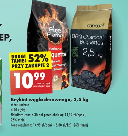 Brykiet węgla drzewnego, 2,5 kg różne rodzaje 4,40 zł/kg Najniższa cena z 30 dni przed obniżką: 14,99 zł/opak., 26% mniej Cena regularna: 14,99 zł/opak. (6,00 zł/kg), 26% taniej