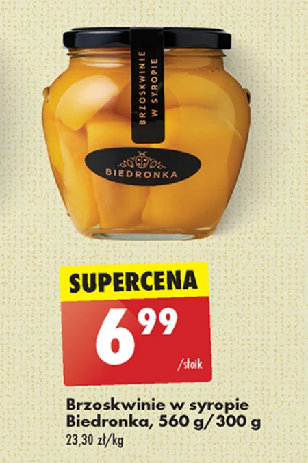 Brzoskwinie w syropie Biedronka, 560 g/ 300 g 23,30 zł/kg