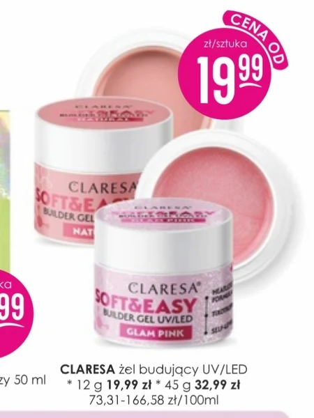 Żel budujący UV/LED występuje w ofercie Jasmin Drogerie w pojemnościach 12 g w cenie 19,99 zł oraz 45 g za 32,99 zł, co daje 73,31-166,58 zł za 100 ml. Produkt przeznaczony jest do profesjonalnego modelowania paznokci, umożliwiając uzyskanie trwałego i estetycznego efektu. Żel charakteryzuje się dobrą przyczepnością i łatwością aplikacji, co sprawia, że jest odpowiedni zarówno dla osób początkujących, jak i doświadczonych stylistek. Warto skorzystać z tej okazji i zaopatrzyć się w wysokiej jakości żel budujący, który pozwoli na wykonanie precyzyjnego manicure w domowym zaciszu lub profesjonalnym salonie.