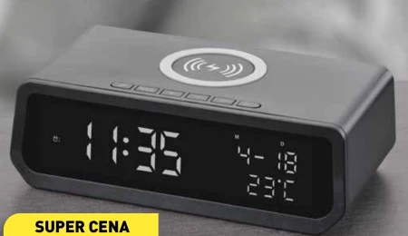 Budzik cyfrowy z ładowaniem indukcyjnym.