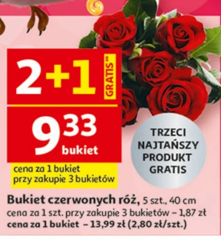 Bukiet czerwonych róż, 5 szt., 40 cm cena za 1 szt. przy zakupie 3 bukietów - 1,87 zł cena za 1 bukiet - 13,99 zł (2,80 zł/szt.)
