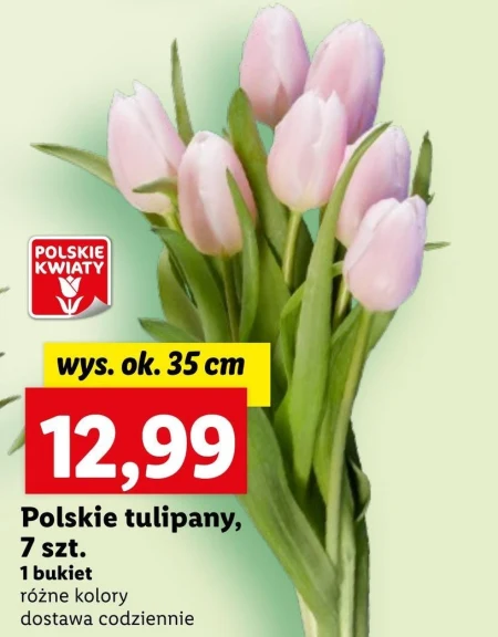 Polskie tulipany, 7 szt. 1 bukiet różne kolory dostawa codziennie wys. ok. 35 cm
