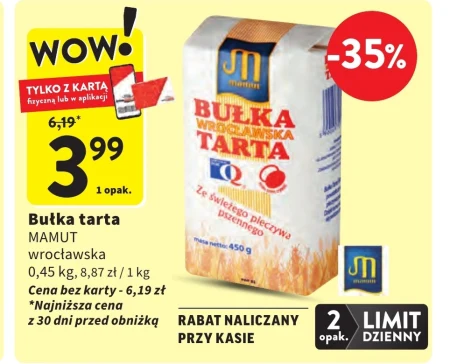 Bułka tarta MAMUT wrocławska 0,45 kg, 8,87 zł / 1 kg Cena bez karty - 6,19 zł