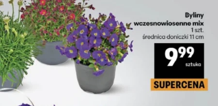 Byliny wczesnowiosenne mix 1 szt. średnica doniczki 11 cm W Delikatesach Centrum znajdziesz wczesnowiosenne byliny w mieszance kolorów, idealne do ożywienia balkonu lub ogrodu po zimie. Rośliny w doniczkach o średnicy 11 cm są gotowe do posadzenia od razu po zakupie. Stanowią wspaniały element dekoracyjny rabat kwiatowych, a także dodadzą koloru w doniczkach na tarasie czy parapecie. Wczesne kwitnienie bylin zapowiada nadejście wiosny i wprowadza pozytywny nastrój.