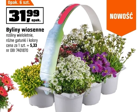 Byliny wiosenne dostępne są w opakowaniu po 6 sztuk w sklepach OBI w cenie 31,99 zł. Rośliny wieloletnie, oferowane w różnych gatunkach i kolorach, idealnie sprawdzą się do ozdobnych kompozycji w ogrodzie lub na balkonie, dodając uroku i koloru przez wiele sezonów. Każda roślina w opakowaniu to cenna inwestycja w piękno Twojego otoczenia, a aktualna cena za pojedynczą sztukę wynosi 5,33 zł. Warto zaopatrzyć się w te piękne rośliny, aby cieszyć się kwitnącym ogrodem już na wiosnę. Numer produktu w ofercie OBI to 7401870.
