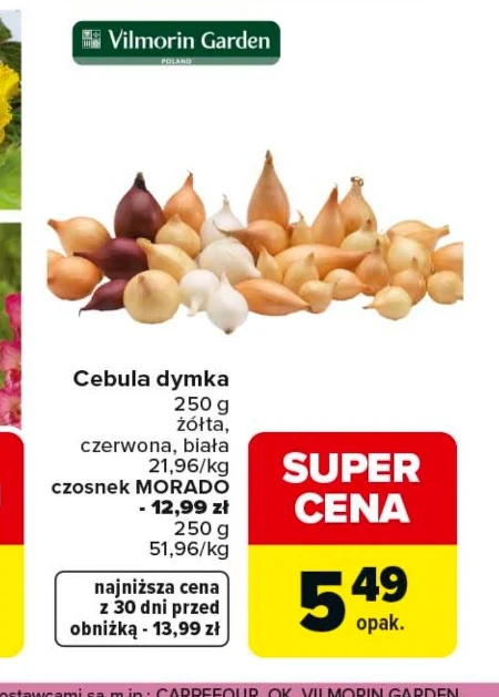 Cebula dymka 250 g żółta, czerwona, biała 21,96/kg czosnek MORADO - 12,99 zł 250 g 51,96/kg