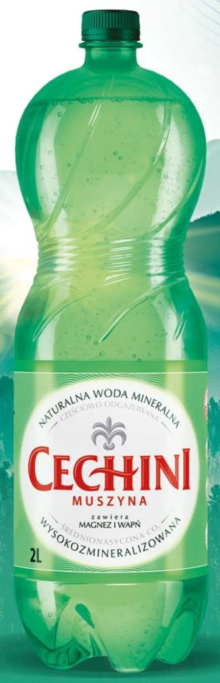 Cechini Muszyna Naturalna woda mineralna wysokozmineralizowana średnionasycona CO₂ 2 l - Oferta archiwalna
