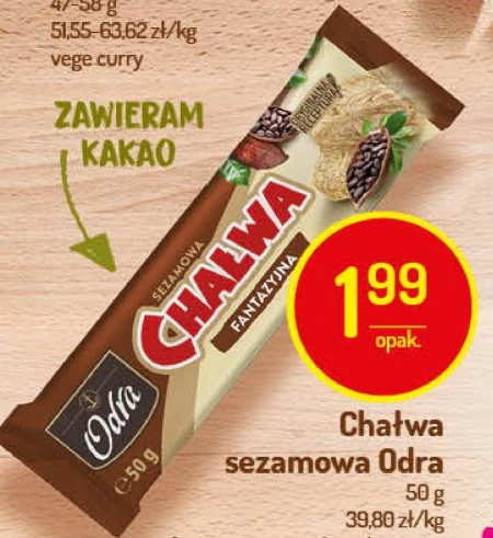 Chałwa sezamowa ODra, 50 g. Do wyboru: fantazyjna, o smaku mlecznym lub o smaku waniliowym.