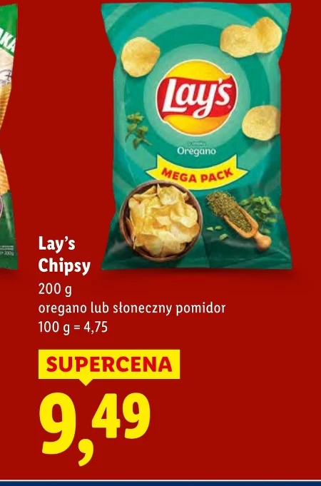Lay's Chipsy 200 g oregano lub słoneczny pomidor 100 g = 4,75