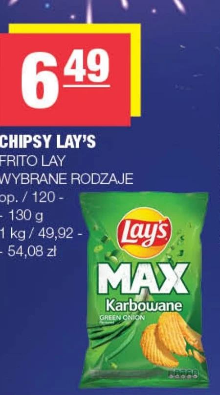 CHIPSY LAY'S FRITO LAY WYBRANE RODZAJE op. / 120 - 130 g 1 kg / 49,92 - 54,08 zł