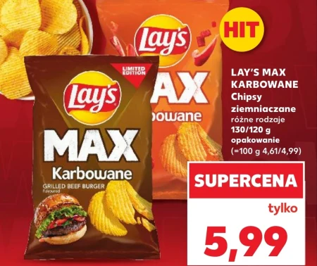 LAY'S MAX KARBOWANE Chipsy ziemniaczane różne rodzaje 130/120 g opakowanie (=100 g 4,61/4,99)