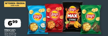 Chipsy Lay's (różne rodzaje) 120 g: 58,25/1 kg 130 g: 53,77/1 kg Idealne przekąski Lay's, w różnych smakach, to doskonały wybór na imprezę, filmowy wieczór lub po prostu jako chrupiący dodatek do lunchu. Popularne chipsy ziemniaczane Lay's, dostępne w różnych wariantach, to klasyk wśród przekąsek, idealny dla całej rodziny i znajomych, a ich chrupiąca konsystencja i bogaty smak zadowolą każdego miłośnika słonych smakołyków. Wybierając Lay's, decydujesz się na niezapomniane doznania smakowe i doskonałą jakość, co czyni je niezastąpionym elementem każdej okazji.