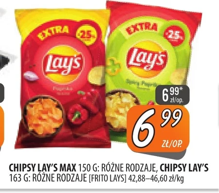 Chrupiące chipsy Lay's Max o gramaturze 150 g można znaleźć w sklepie PSS Spolem Szczecin w cenie 6,99 zł za opakowanie. Dostępne są różne, popularne smaki, które z pewnością zaspokoją potrzeby każdego miłośnika przekąsek. To idealna propozycja na spotkanie z przyjaciółmi, wieczór filmowy, czy po prostu jako szybka i smaczna przekąska w ciągu dnia. Warto skorzystać z tej oferty i cieszyć się doskonałym smakiem chipsów Lay's Max, gdy tylko poczujesz ochotę na coś chrupiącego.