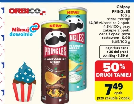 Chipsy PRINGLES 165 g różne rodzaje 14,98 zł/cena za 2 opak. 4,54/100 g przy zakupie 2 opak. cena 1 opak. poza zestawem - 9,99 6,05/100 g najniższa cena z 30 dni przed obniżką - 8,89 zł
