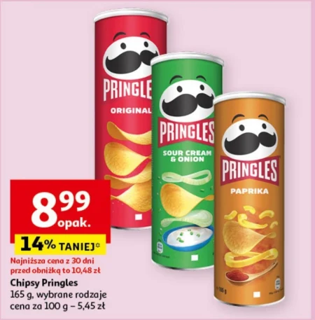 Chipsy Pringles 165 g, wybrane rodzaje cena za 100 g - 5,45 zł