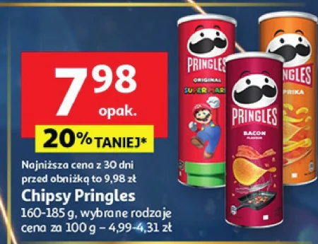 Chipsy Pringles 160-185 g, wybrane rodzaje cena za 100 g - 4,99-4,31 zł