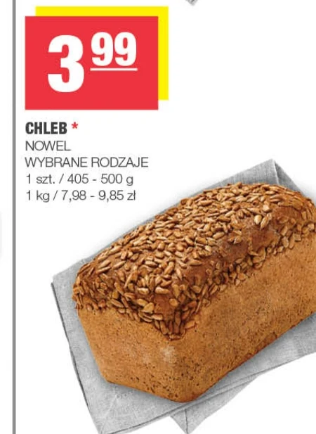 CHLEB * NOWEL WYBRANE RODZAJE 1 szt. / 405 - 500 g 1 kg / 7,98 - 9,85 zł
