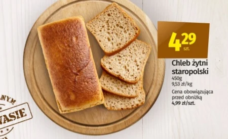 Chleb żytni staropolski 450g 9,53 zł/kg Cena obowiązująca przed obniżką 4,99 zł/szt.