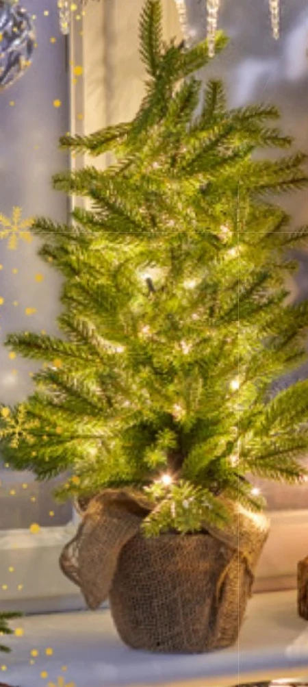 Choinka LED w jutowym worku na baterie.