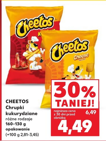 CHEETOS Chrupki kukurydziane różne rodzaje 160-130 g opakowanie (=100 g 2,81-3,45)