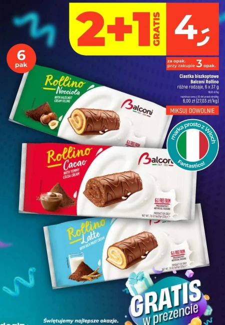 Ciastka biszkoptowe Balconi Rollino różne rodzaje, 6 x 37 g