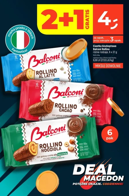 Ciastka biszkoptowe Balconi Rollino różne rodzaje, 6 x 37 g