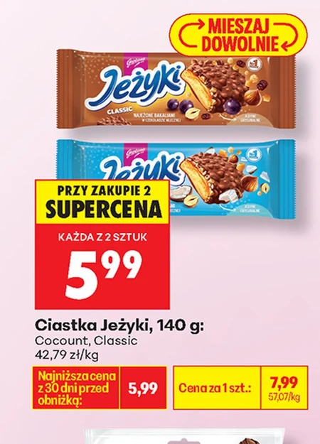 Ciastka Jeżyki, 140 g: Cocount, Classic 42,79 zł/kg
