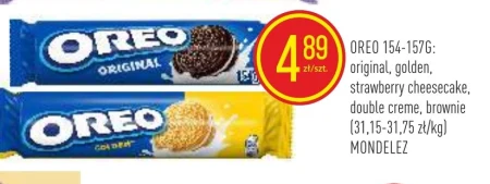 OREO 154-157G: original, golden, strawberry cheesecake, double creme, brownie (31,15-31,75 zł/kg) MONDELEZ