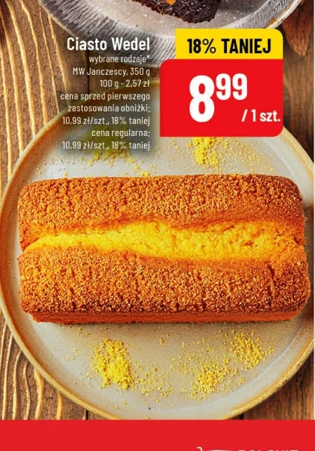 Ciasto Wedel wybrane rodzaje* MW Janczescy, 350 g 100 g - 2,57 zł cena sprzed pierwszego zastosowania obniżki: 10,99 zł/szt., 18% taniej cena regularna: 10,99 zł/szt., 18% taniej