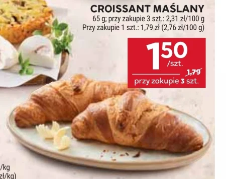 CROISSANT MAŚLANY 65 g; przy zakupie 3 szt .: 2,31 zł/100 g Przy zakupie 1 szt .: 1,79 zł (2,76 zł/100 g)