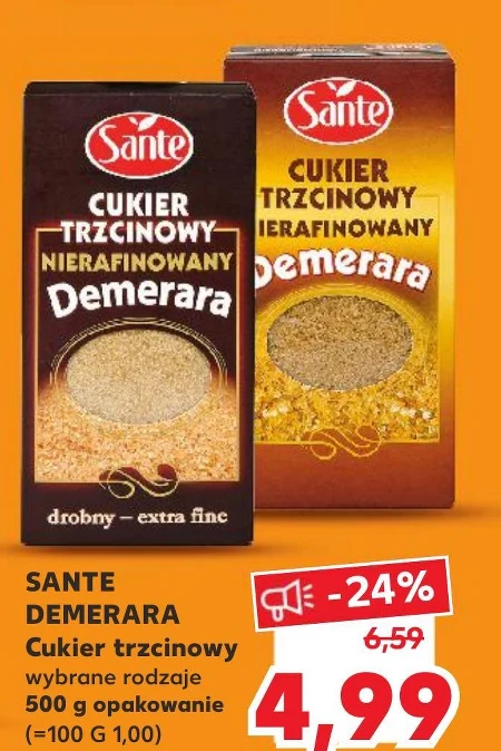 SANTE DEMERARA Cukier trzcinowy wybrane rodzaje 500 g opakowanie. Cena 4,99 zł. /opak.